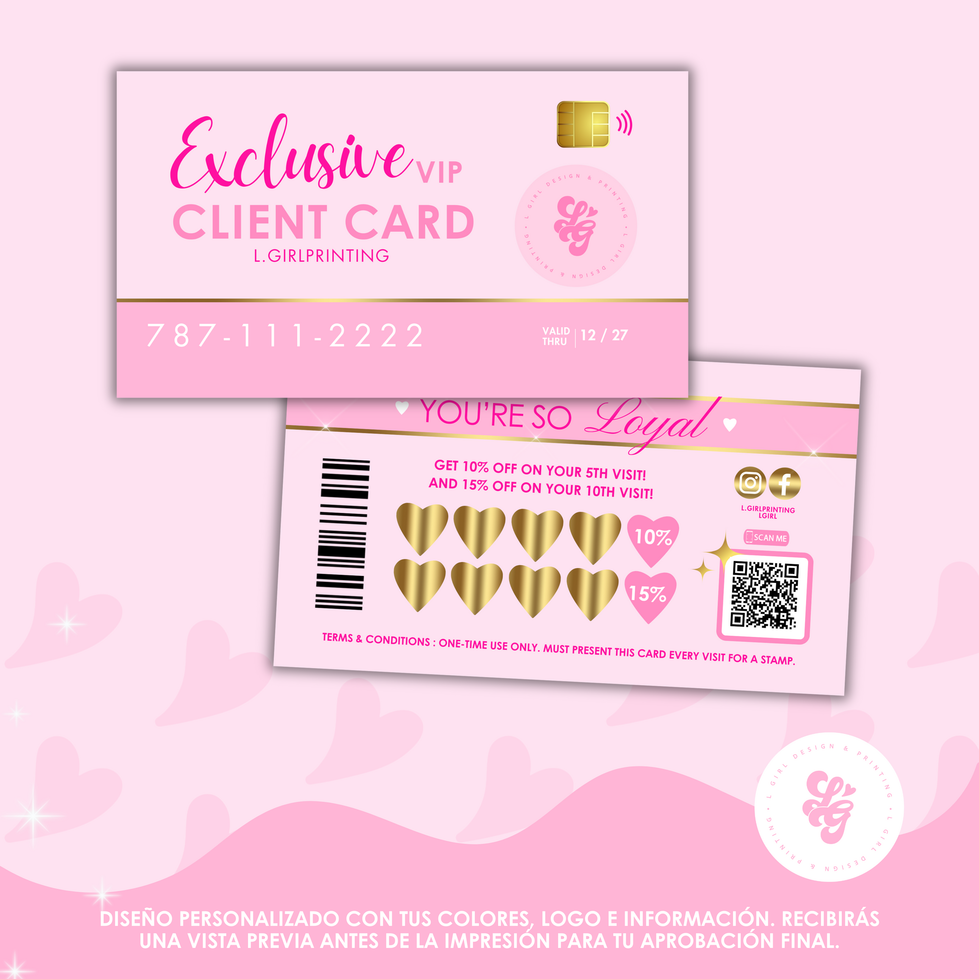 La tarjeta de lealtad es una forma de recompensar a nuestros clientes fieles. Al usarla, los clientes pueden acumular puntos o recibir descuentos exclusivos. Has que ese cliente potencial siga volviendo a ti.