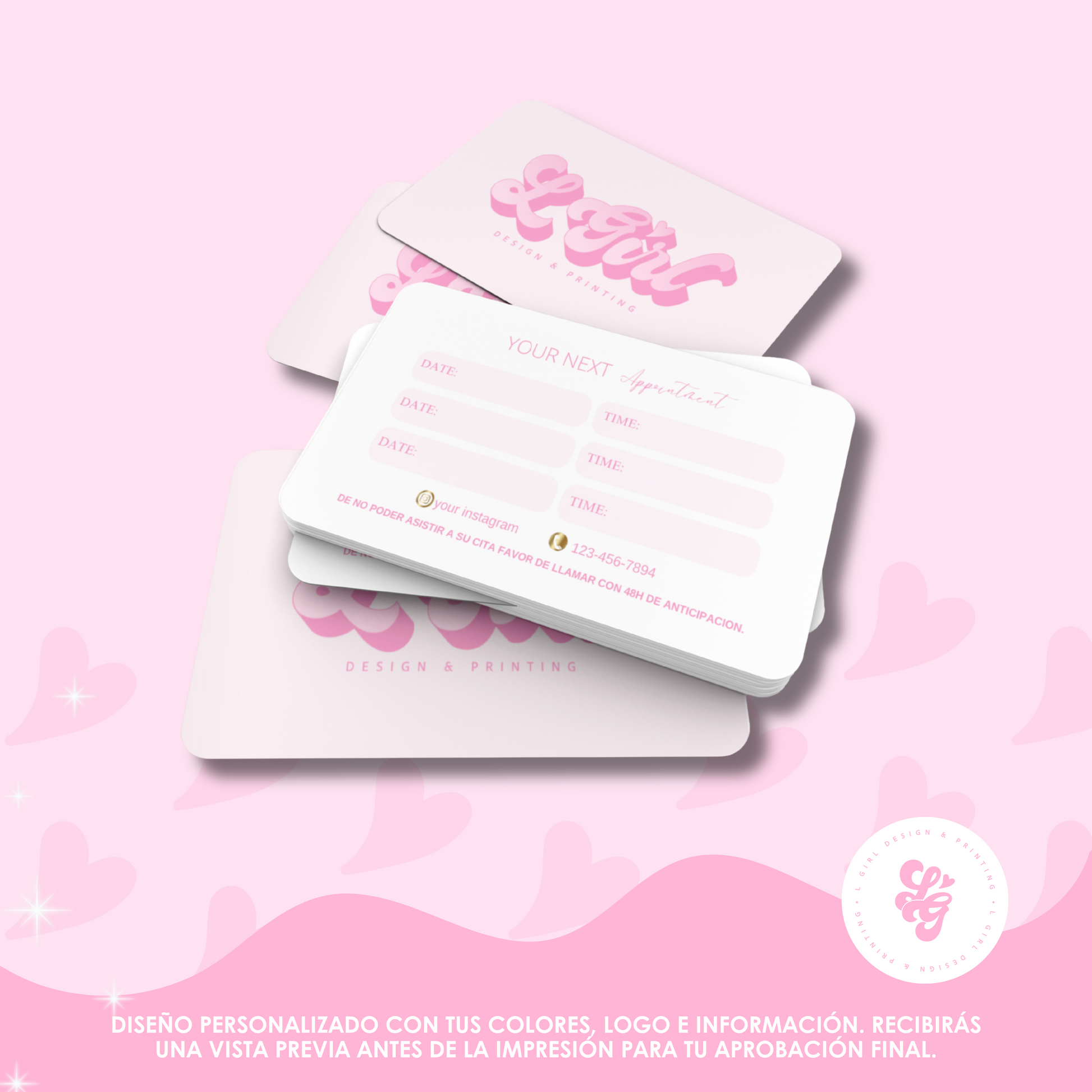 Las Tarjetas de Citas son una herramienta profesional diseñada para facilitar la organización y recordatorio de compromisos. Ideales para negocios que manejan agendas, estas tarjetas permiten registrar fechas y horarios de manera clara y eficiente, mejorando la comunicación con los clientes y reduciendo ausencias. Su formato práctico y elegante refleja profesionalismo y ayuda a mantener un control preciso de las citas programadas.