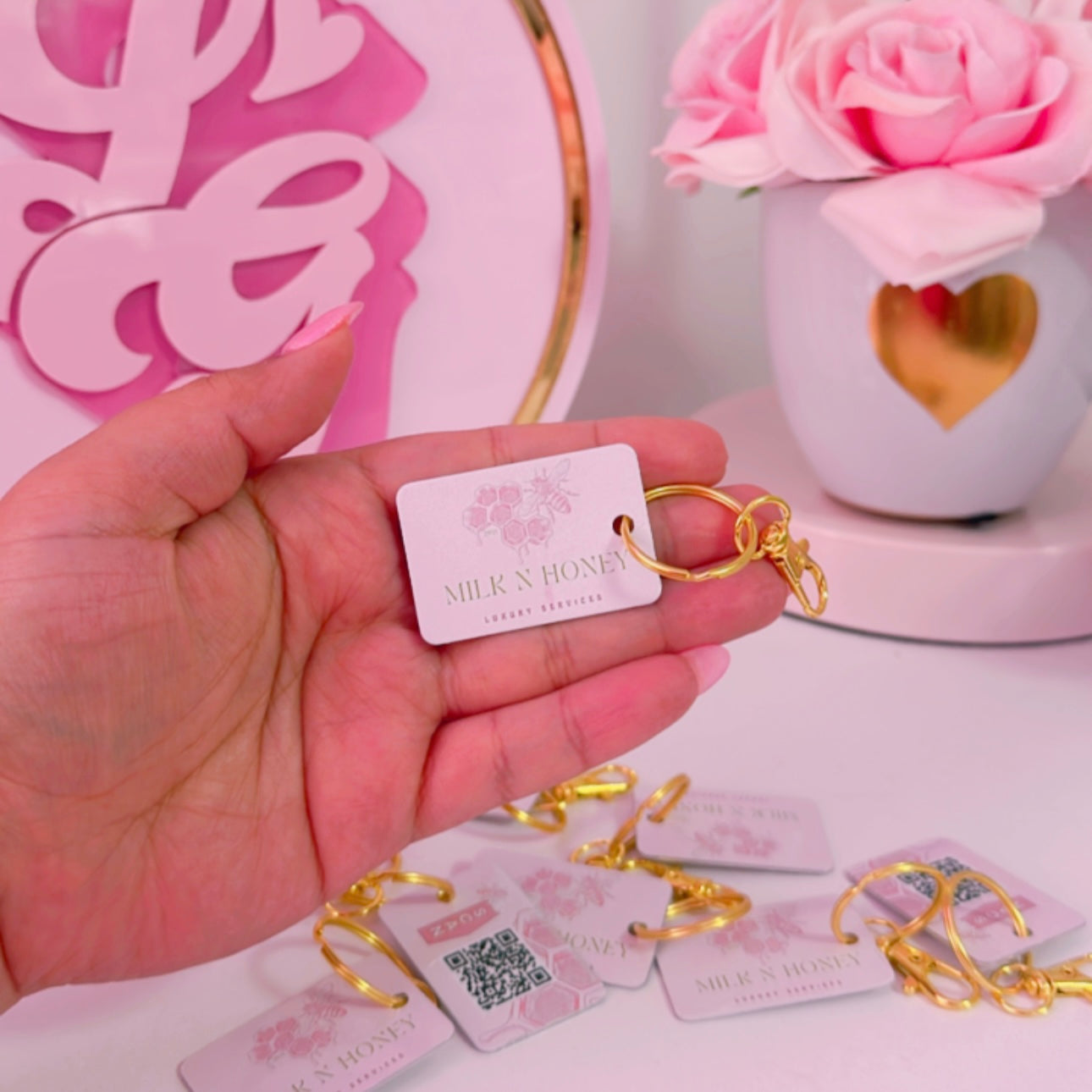 Llaveros super prácticos para regalar a tus clientes contiene tu logo y qr code para promover tu negocio 😍🩷 Llega a mas personas con nuestros llavero.